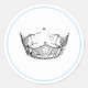 Pegatina redondeado con fondo blanco con un dibujo negro/blanco-gris con aspecto de corona. Tiene un toque de color con un borde azul cielo. Personalizar o compra como está.