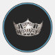 Pegatina redondo mostrado con fondo negro con una imagen de la corona de aspecto plateado. Tiene un toque de color con un borde azul cielo. Cambie el color del borde si lo desea. La opción Filtro proporciona opciones de color limitadas. Personalizar o compra como está.