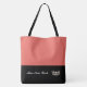 Esta bonita y elegante bolsa de tote grande se muestra en un estilo Salmon [coral] y de bloque de color Negro con una corona de concurso y texto personalizado. Personalizar este elemento y cambia el texto al tuyo.