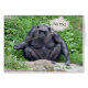 Chimpancé sentado en una roca mordiendo en un carrizo de hierba para echarte de menos.