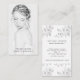 Tarjeta de visita para fotógrafos con un toque elegante y una foto personalizado en el frente con su nombre y título en estilo vertical. En el reverso, la información comercial está en el mismo elegante tipo de letra serif con bordes florales superiores e inferiores en un color gris polvoriento.
