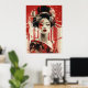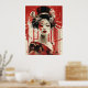 Presentamos una pieza realmente cautivadora para la decoración de tu casa, un poster que exhibe una impresionante geisha japonesa como nunca antes. Esta creación artística combina la belleza tradicional con un toque moderno, con detalles en rojo y blanco intrincados, con un telón de fondo de paleta oscura. Inspirándose en el arte digital y el estilo ciberpunk, este diseño incorpora elementos inspirados en el graffiti, gráficos vectoriales, salpicaduras y goteos de pintura sobre el papel para una estética verdaderamente única. En un retrato fascinante, la geisha es representada como una figura misteriosa adornada con atuendos tradicionales, con el cabello estilizado en formas geométricas que desafían la convención. Su expresión enigmática es segura de intrigar y fascinar a todos los que la contemplan. Añade un toque de elegancia e intriga a tu espacio con esta extraordinaria pieza que está destinada a encender conversaciones y admiración.