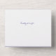 Las invitaciones Todo en uno son la manera más fácil y bella de combinar una invitación personalizada preciosa con una postal RSVP separable y autoperforada. ¡Así de sencillo! Simplemente se tiene que doblar, sellar con las pegatinas transparentes incluidas, y listas para enviar. En cuanto tus invitados reciban su invitación personalizada, solo tendrán que separar la postal por la línea autoperforada y mandártela de vuelta.