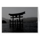 Una fotografía clásica en blanco y negro del edificio Miyajima durante la marea alta