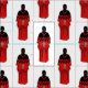 MMIW Kwe con el Patrón de Mano Roja Tela blanca de la diseñadora de moda norteamericana nativa Ayasha Loya.