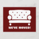 Muebles moviendo postales para nueva dirección. Cambio de postales de dirección con diseño elegante de silla / sofá. Moviendo postales con un diseño elegante. Personalizado mover texto; ¡Nos hemos movido! o ¡Nos hemos movido! Añade tu nueva dirección de tu casa en la parte de atrás. Tarjetas móviles de moda para un nuevo hogar, fiesta de limpieza o ubicación de negocios. Tipografía moderna. También es útil para la compañía motriz.