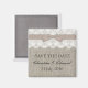 Anuncie a su boda con estilo con esta moda, guarde los imanes de fecha con un fondo de burlap. Puede realizar un personalizar completo cambiando el texto y los tipos de letra. En esta galería se pueden encontrar tarjetas de invitación coincidentes.