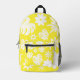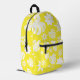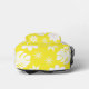 Un diseño floral blanco se sienta sobre un fondo amarillo brillante.