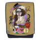 El día de Steampunk de la mujer muerta usando maquillaje de cráneo de azúcar. Vestido mayormente en morado. Alrededor de ella hay engranajes, cráneo, reloj, rosas y llaves.
