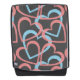 Patrón de corazones florales rosas y azules sobre fondo negro.