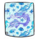 Hermosa, rara, púrpura y turquesa creatura oceánica, esta Sirenita es nadadora y parece jugar, rodeada de Starfishes, conchas marinas, algas, peces y sosteniendo un pequeño caballito de mar en la mano; todos los elementos están ensamblados para componer un patrón de fantasía. Ilustracion vectorial Copyright BluedarkArt.