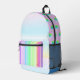 Mochila artística del arco iris pastel. Mochila de tonos suaves multicolor pastel. Mochila de estilo único creativo multipatrón. Suave rayas arcoiris y acuarelas salpicadas. Puntos y rayas artísticas, gradientes pastel y mochila oscura y elegante. Diseño de Lausn