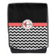 Mochila personalizada con un patrón de chevron en blanco y negro. Puede personalizar de este producto añadiendo su propio nombre y inicial al centro del logotipo del monograma.