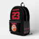 Mochila baloncesto deportes Senior Night to school negro y rojo Monograma Iniciales Patrón gris Etiqueta de equipaje negro. Elegante simple y simple chicas y niños de diseño blanco y verde y agradable, con texto personalizado y monograma, con un patrón monograma exclusivo, regalo perfecto para viajeros, deportes escolares y otros