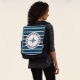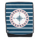 Diseño náutico con decoración de brújula en forma redonda sobre fondo rayado azul y blanco