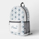 Haga una declaración con esta elegante bolsa con un diseño floral de moda en tonos azules suaves. Personalizar con su nombre en un tipo de letra de guión elegante. El patrón floral se extiende con elegancia a lo largo del panel superior, proporcionando un aspecto único y elegante. Perfecto para estudiantes, viajeros y todo aquel que ame un toque personal. Durable y espacioso, es ideal para llevar libros, laptops y artículos de primera necesidad. Un regalo hermoso y reflexivo para ti mismo o para alguien especial.