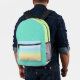 Colorida mochila de diseño creativo. Mochila elegante de diseño multipatrón único. Diseño de colores de luz verde rosa azul. Mochila estética azul pastel de color verde rosa. Diseño de Lausn