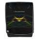 Imagen fractal de cabeza "alienígena" flotando en el espacio. El objeto principal es amarillo, enmarcado por azul y verde. Personalice su nombre/texto en el cuadrante superior.