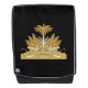 Diseño con escudo de armas de la República de Haití sobre fondo negro, diseño dorado