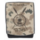 Representación de un escudo de un Macabee y dos lanzas sobre un fondo de camo desértico. El escudo está adornado por un león y el texto que dice "Yisrael" (Israel) en el alfabeto paleo-hebreo. También aparece un texto hebreo moderno que dice "Maccabee". Añade tu propio texto adicional. Los macabros eran rebeldes judíos que liberaron a Judea del yugo del Imperio Seleucida. Chanukkah no es solamente un festival de mediados del invierno que incluye velas y manjares fritos, celebra una victoria militar y asegura la libertad religiosa, sobre el Imperio Seleúcido. Además, la revuelta fue una guerra civil en la que participaron los judíos leales al G-d y los que habían adoptado el Hellenismo de los Seleucidas.