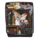 Dos gatitos y un hada se sientan en la estantería llena de libros para tu gato mágico.