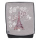 Esta mochila Negrita Face con una cara frontal intercambiable tiene un ilustracion en burdeos de la Torre Eiffel en Francia rodeado de flores de margarita blancas en un fondo gris con el texto Oh Paris.