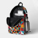 90s street icons backpack, neo-bauhaus backpack, geometric printed backpack, colorful abstract design, retro 90s style, artistic graphic backpack, modern geometric bag, vibrant school backpack, bold pattern backpack, nostalgic 90s aesthetic