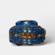 Exclusiva mochila con diseño de un pez de colores en el fondo del mar. Fondo marino de fantasía con textura metálica.
