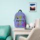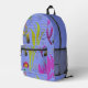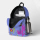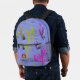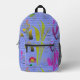 Cheerful and colorful floral pattern with abstract and botanical elements on horizontal striped background. Violet blue color.