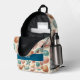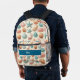 Las conchas marinas y las estrellas del mar en azul y marrón, con un fondo de arena clara, crean la perfecta mochila temática de la playa. Ideal para los amantes del océano y de la playa.