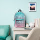 Mochila abstracta de galaxia acuática azul rosada oscura Monograma Impreso Mochila. Personalice la mochila con el nombre y la inicial de su personalizado. Diseño de moda en galaxia abstracta verde rosada verde marino. Resumen de galaxia digital con colores oscuros rosados y verdes viridianos de la colección de coral.