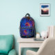 Imagen multicolor (rosa, azul, púrpura), fractal de ciencia ficción en un fondo estelar. Una perturbación en el continuo espacio-tiempo. ¡Escudos! Personalizar agregando su propio texto.