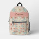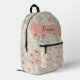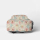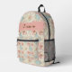 A floral applique patchwork pattern with pink and ivory flowers roughly stitched onto blue and ivory fabric, with worn, ecru lace gives this backpack a shabby and chic look that you will love. Resembles and old quilt, forgotten in an attic. Very feminine, perfect for anyone who loves stitching.