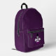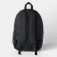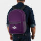 Backpack with fleur-de-lis (fleur-de-lys or lily flower) symbol with rainbow stripes of black, gray, white and purple from asexuality flag; ace pride design on purple background