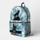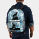 Mochila Impresa Aullante Lobo abstracto aqua azul negro Monograma