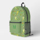Mochila monogramada. Presenta un ilustracion vintage de tres pájaros diferentes sobre el fondo verde de Asparagus (#8FAF73) 1 ave amorosa de cabeza roja 2.Paracaídas de hierba 3.Ave amorosa de Madagascar...gran diseño para los amantes de las aves. De la tienda de lumirala. ___________________________ La imagen original se publicó en el libro "El libro ilustrado de canarios y aves-jaula, británicos y extranjeros" Año: 1878