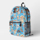 Un lindo diseño de patrón de Perro Cachorro con ilustraciones acuarelas de diferentes razas de perro como , Dalmatian, Pastor Alemán, Bulldog, Pug, Poodle, Español. Con un fondo azul. Sólo hay que añadir una inicial para un regalo monogramado para hacer una mochila divertida para los amantes del perro y los estudiantes.