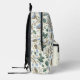 Esta mochila con motivos tiene una huella divertida, perfecta para los amantes de las aves y de la naturaleza. Cuenta con ilustraciones sencillos de pájaros voladores sobre ramas de arándanos. Los gráficos son de color azul claro, marrón claro y verde oscuro con un fondo de color crema o marfil.