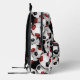 Esta fresca mochila de fútbol presenta un patrón aleatorio de pelotas de fútbol de tamaño variado, de color negro y blanco que se dan vuelta por todas partes sobre un fondo negro - personalizar con el monograma del futbolista - de katz_d_zynes