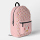 Esta impresionante mochila presenta un lindo personalizado de un búho rosa con ojos somnolientos, un gran pico abierto y lindas plumas esponjosas. El búho está sosteniendo un globo rosado de burbujas. Hay un texto rosa bonito dentro del globo que dice "Niña bebé". Este es el regalo perfecto para celebrar a una niña.