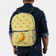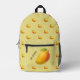 Big mango on the front pocket. Along with your name, text, or slogan. Pattern of small, cute, and juicy mango on yellow on your backpack.