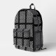 Go back to school in style with this cool black and white checkered backpack. This backpack features a pattern of checkers and stripes in alternating white and black. Original digital artwork by The Gifted Grackle.