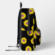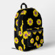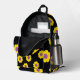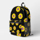 Go back to school in style with this flower print backpack. Pretty book bag features a lovely pattern of bright yellow and purple flowers against a black background. , with black details. Original digital artwork by Buttercup's Clothing and Collectables.