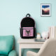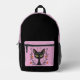 Black Cat Filigree / Quilling style design printed backpack featuring a Black Cat with large green eyes surrounded by flourishes and flowers.
