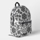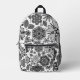 Backpack all over print cut sew style storage bag printed with Black And Gray On White Retro Floral Art Seamless Pattern original hand drawn graphic design artwork illustration by TheFabricSeal print on demand shop at Zazzle.com #ZazzleMade ©️Original. https://www.zazzle.com/store/thefabricseal
