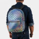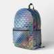 Mochila Impresa Blue Green Mermaid Fish Scales Holographic Trendy