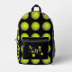 Mochila Impresa Bolas De Tenis Amarillo Fluffy Sobre Negro,