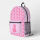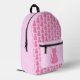 Esta impresionante mochila presenta una imagen de arte digital de un gato rosa bonito con una cola rizada. Sus ojos son rosa pálido con pupilas negras y tiene pestañas negras largas. Ella lleva un arco rosado en su cabello y un hermoso collar de perlas alrededor de su cuello. El diseño es perfecto para celebrar a una niña. Hay texto personalizado en el gato para que puedas revelar el sexo del bebé o incluir un mensaje. El mensaje predeterminado es Baby Girl.