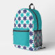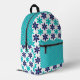 MOCHILA IMPRESA BONITO TURQUESA Y FLORAL AZUL Y GEOMÉTRICA