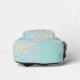 En esta elegante mochila hay flores luminosas de oro lloviendo sobre suaves pasteles rosas, azules y verdes. Se puede personalizar en el bolsillo delantero o guardar como está con la frase "Señora Jefe"